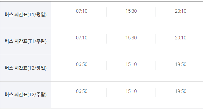 인천공항 1터미널 - 07:10, 15:30, 20:10