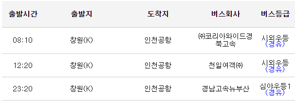 오늘은 창원에서 인천공항을 오가는 버스 시간표를 알아보도록 하겠습니다.
