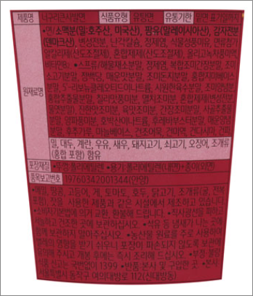 원산지 - 면/소맥분(밀-호주산,미국산), 팜유(말레이시아산), 감자전분(덴마크산) 등.